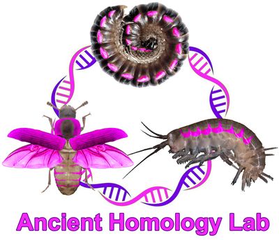To build models of how morphology—and the gene networks that create it—evolves over immense timescales of half a billion years, research at the Ancient Homology Lab investigates the near-endless plethora of arthropod outgrowths. We use morphological, embryonic, and molecular methods to compare structures between three arthropod species that have been diverging from each other for half a billion years: the flour beetle insect, Tribolium castaneum, an established model insect; the genetically tractable amphipod crustacean Parhyale hawaiensis; and the millipede Oxidus gracilis.